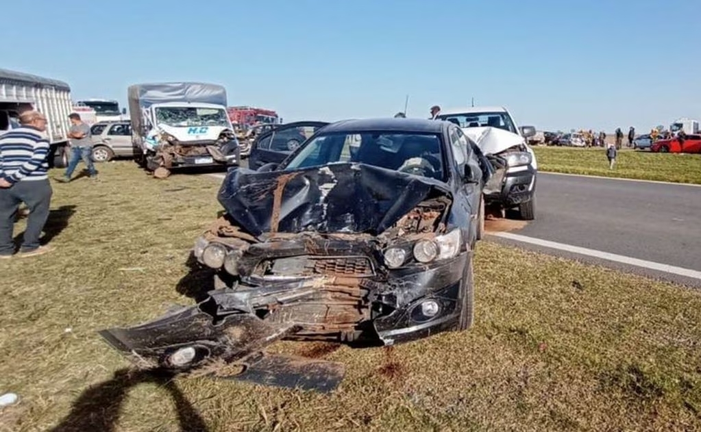 Según reportaron fuentes policiales y Bomberos Voluntarios de esa zona, el choque en cadena se registró en el kilómetro 330 de la Autopista Rosario-Córdoba, entre las localidades santafesinas de Carcarañá y San Jerónimo.