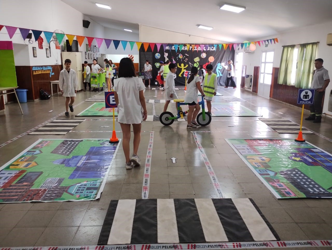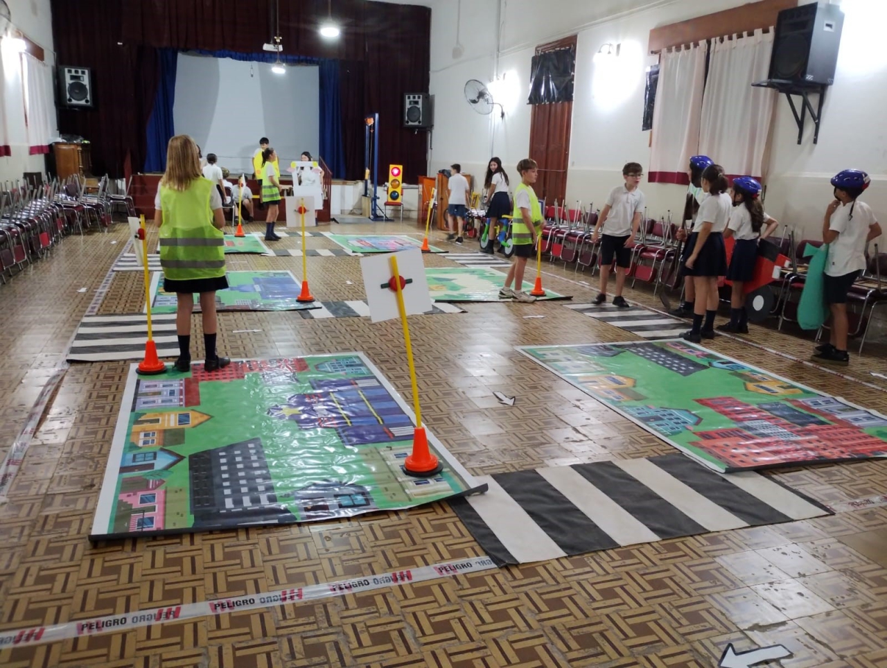 Mediante un ambiente de juego, se enseñaron y repasaron normas y señales de tránsito básicas para la circulación segura de peatones, ciclistas y acompañantes de auto y moto en la vía pública.